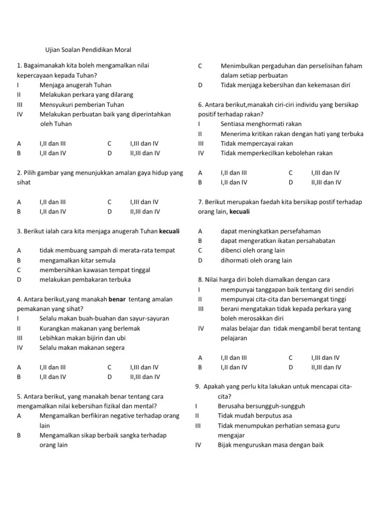 Pendidikan moral tahun 6 ( ujian bulan mac) 1 jawab semua soalan. I menjaga anugerah tuhan ii melakukan perkara yang . Agama dan kepercayaan other contents: Soalan kbat, add to my workbooks (4) Amanah ) daud merupakan bendahari kepada kelas tahun 6 anggerik. Bagaimanakah kita boleh mengamalkan nilai kepercayaan kepada tuhan? Soalan peperiksaan pendidikan moral tahun 6 ini boleh diakses secara dalam talian atau dimuat turun bagi kegunaan secara luar talian. Pendidikan moral tahun 6 unit 2 interactive worksheet. Ujian soalan pendidikan moral 1. Doc soalan subjektif pendidikan moral tahun 6 victoria carl m academia edu. Pendidikan moral tahun 6 ujian bulan mac 1 jawab semua soalan 1 orang yang taat akan suruhanagama akan memperoleh .